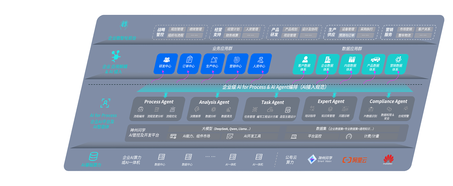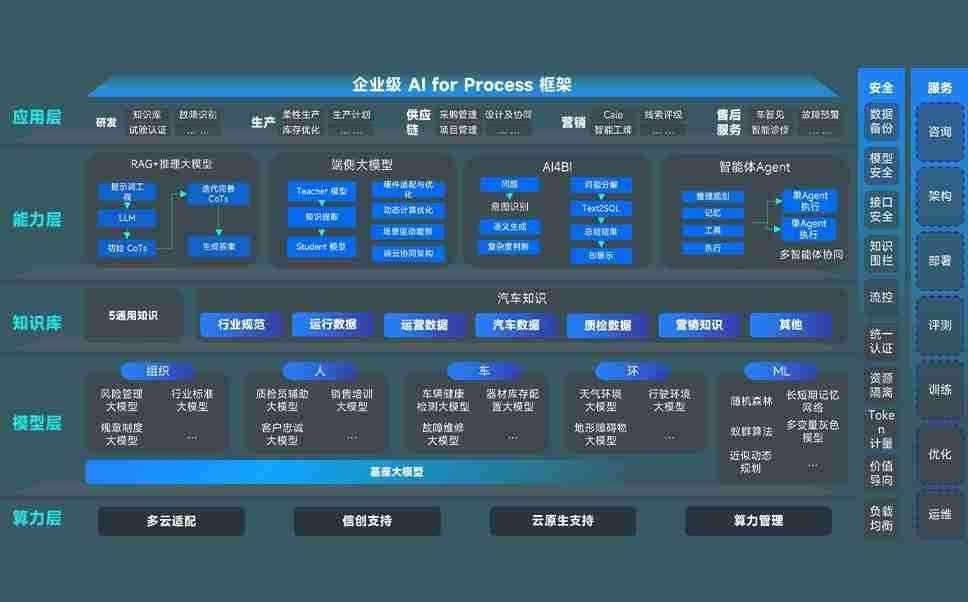 端到端的一站式AI工作空间深度融合了从企业战略规划到日常经营的全流程业务板块,,定向解决车企内部领域多、、、、部门多、、链条长、、场景碎片化等难题,,支持车企快速构建以AI为核心的生产力写作体系,,,实现任务执行与AI能力的无缝集成与交互
